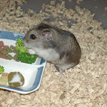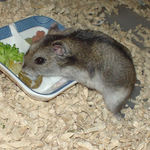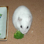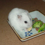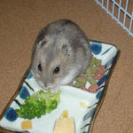 エサの時間、さっそくブロッコリーに齧りついているユウキです。写真で見ると、なんだか目パッチリして、かわいらしい。なんか、若い頃みたい。