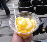 出店もさほど出てなかったけれど、喜作のマンゴーカキ氷。氷花雪が売ってました。日陰にいると別段暑くはないのだけれど、ハーフタイムに買って食べました。