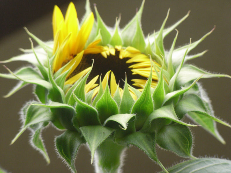 そして、ヒマワリの花がようやく咲きつつあります。もう少しで完全に開きそうです。ここ数日は天気がよさそうなんで、ようやく花が咲きそうです。