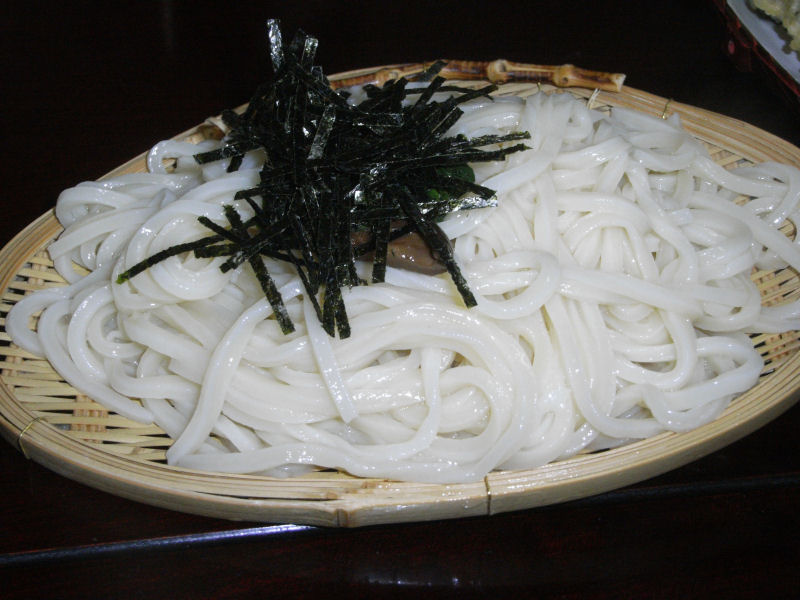 天ぷら盛り合わせ2つと各自でもりうどんを注文。元々、量が多いんでこれでも十分。たらふく食って、水沢観音に移動。