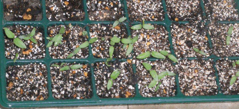 先週、種を蒔きなおしたナスの芽がいっせいに出てきました。
