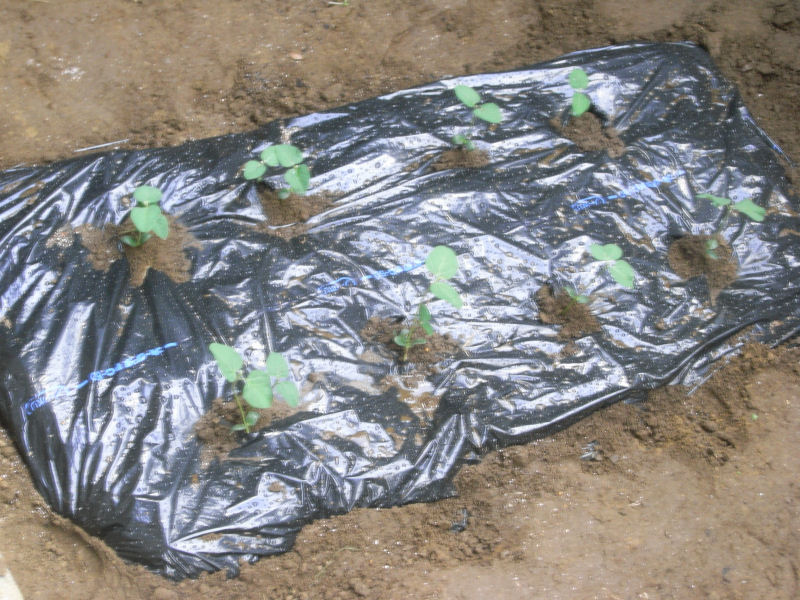 先週、芽が出てきていた、エダマメ。成長してはきたんだが、徒長気味なので定植する事にしました。