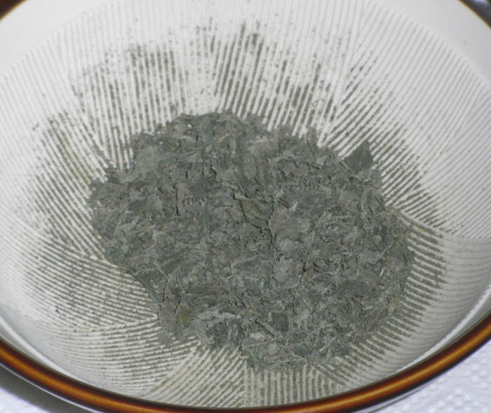 途中までやった感じ。葉の芯とかを取り除いて、さらに磨り潰してドライバジルの完成です。めちゃめちゃ、バジルのニオイがプンプンします。