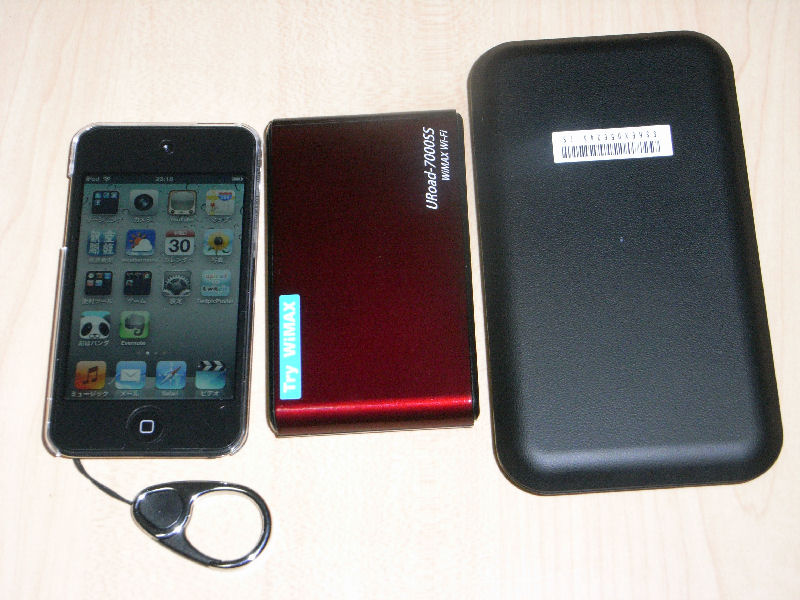 iPod touch、URoad-7000SS、IS01を並べるとこんな感じです。iPod touchより少し小さいくらいで、少し厚いです。