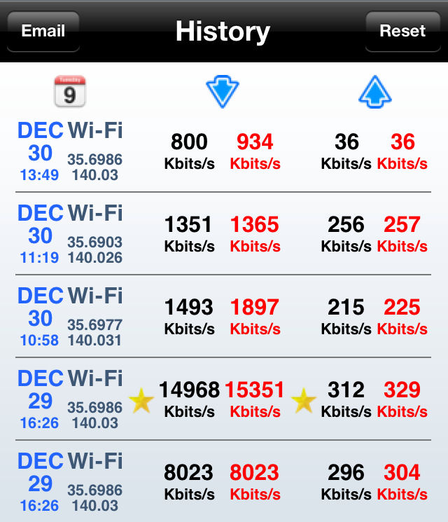 自宅の居室で大体8Mbps近く出てます。ただ、奥まったところに入ると極端にスピードは落ちますね。でも、繋がってるだけマシかな。