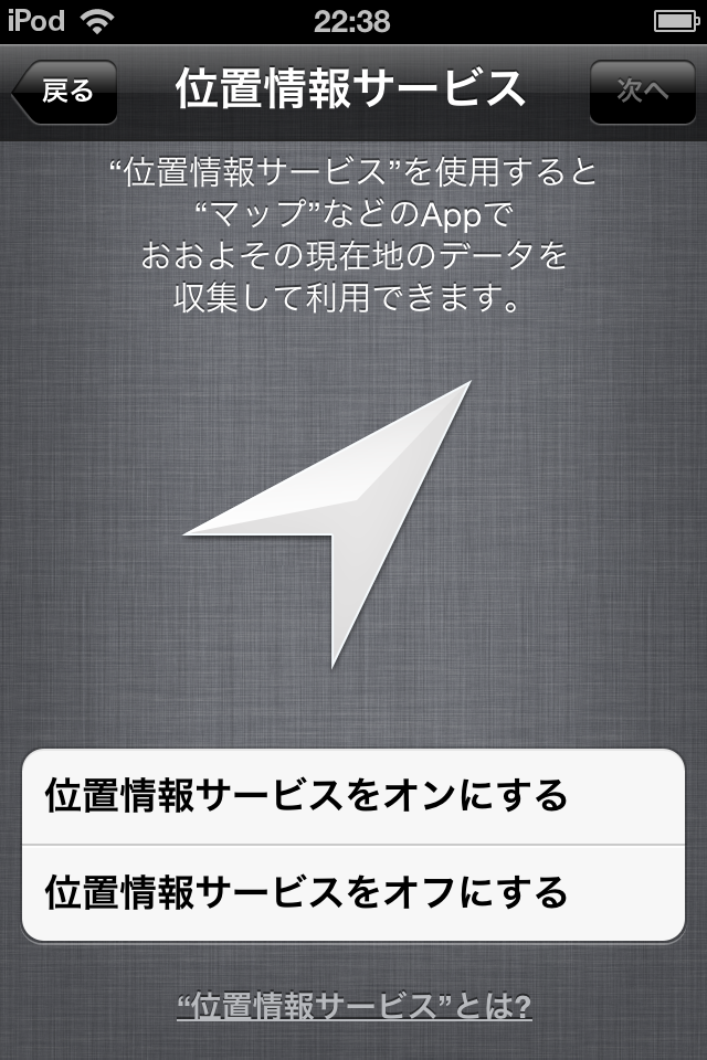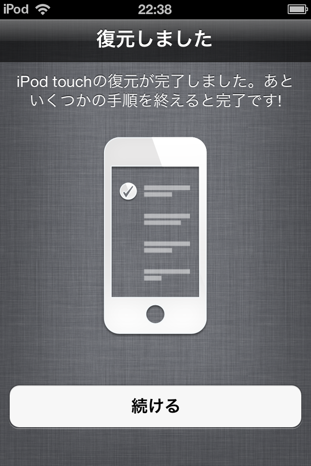 iPod touchの復元が終わってからは、iPod touch上で各種設定をおこないました。