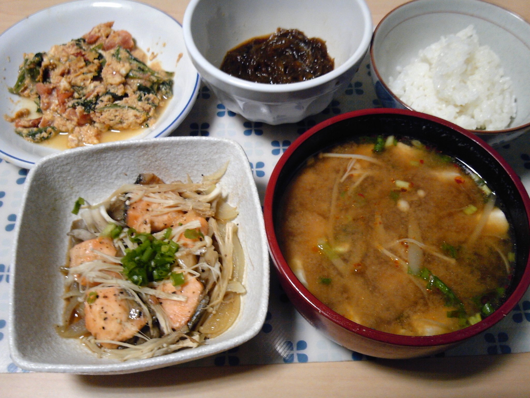 クックパッドレシピをアレンジ 塩鮭と玉ねぎのバター蒸し(11/28の夕食)