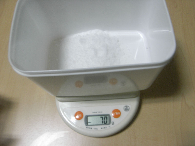 70gの塩の加減がわからなくて、計る容器大きすぎたw