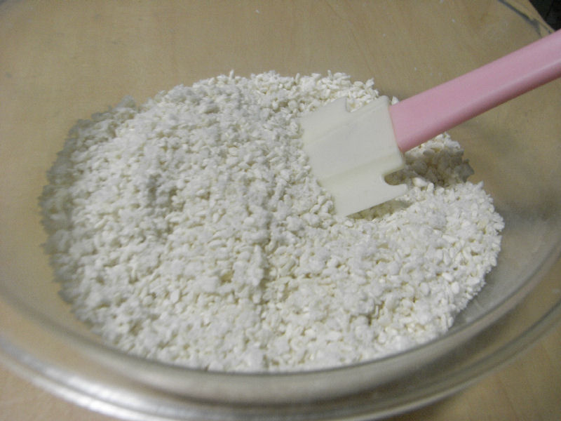麹と計量した塩をへらを使ってよく混ぜあわせます。どっちも白いので混ぜぐらいがわかりづらいので、とにかくしっかり混ぜる。