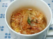朝食は、マグカップでキムチ豆腐雑炊でした。