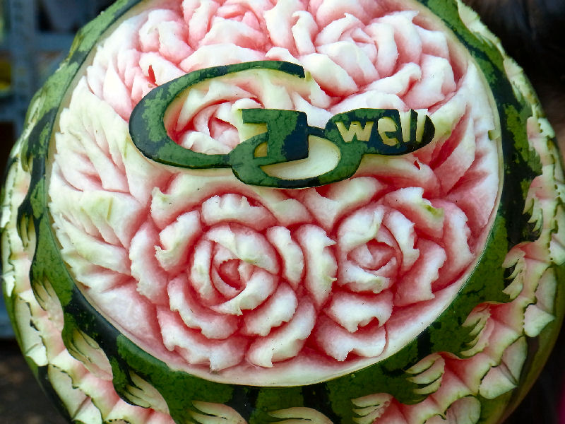 フルーツコーナーや装飾品、あとはカービングのお店とかいろいろいろありました。