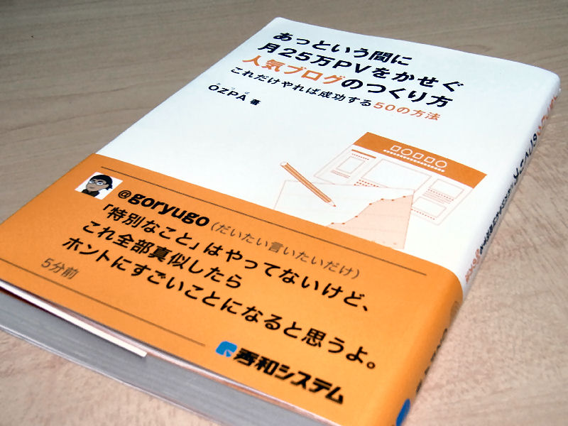 その @ozpa さんが、これだけのPVをかせぐようになったのだから、ブログを書いてる人は読んでみた方がいい。この手の本としては、かなり読みやすいので、気軽に読みきれるところがいい。