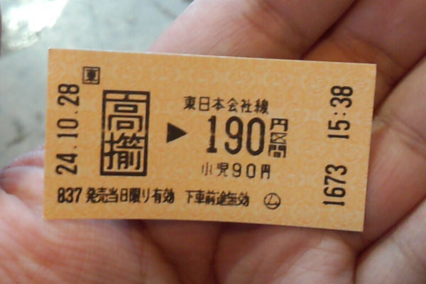 帰りも、高擶駅まで歩きました。1時間に1本くらいしか電車が来ないので、結構待ち時間ありました。高擶駅は無人駅ですが、簡易乗車券販売機があって、乗車券が買えます。ここから山形駅まで190円です。