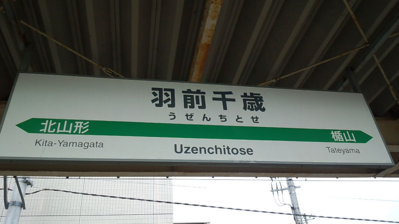 山形駅までは行かずに、少し手前の奥羽本線(山形線)羽前千歳駅で乗り換え。乗換駅ではあるが、ホントに何もない駅。乗り換え時間も空いてたけど、特に周りに何があるという訳でもなかったので、待合室でじっと待ってました。