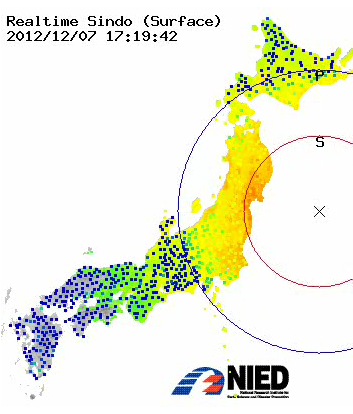 本日(12月7日)の夕方に宮城県三陸沖を震源とするM7.3の地震があり、東北・関東の広い範囲で強い揺れがあった。