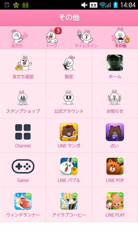 さらにその他の画面。友達追加や設定のアイコンもコニーになってますね。