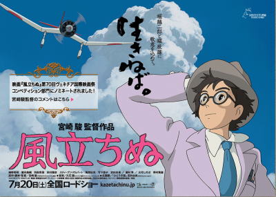 夏休み中、時間があったんで宮崎駿の「風立ちぬ」を観てきました。この作品は、実在の人物で零戦の設計者堀越二郎が主人公となり、同年代を行きた堀辰雄の人生を重ねあわせた内容となっています。