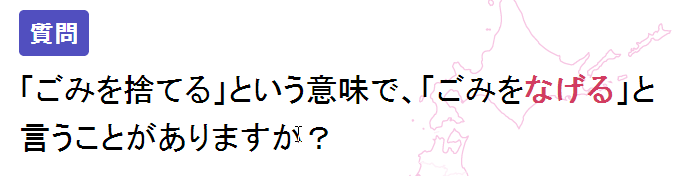 ゴミを捨てることを、"なげる"と言うのは東北地方や北海道などで見受けられると思います。ここで、ある程度の絞込みはされていたでしょう。