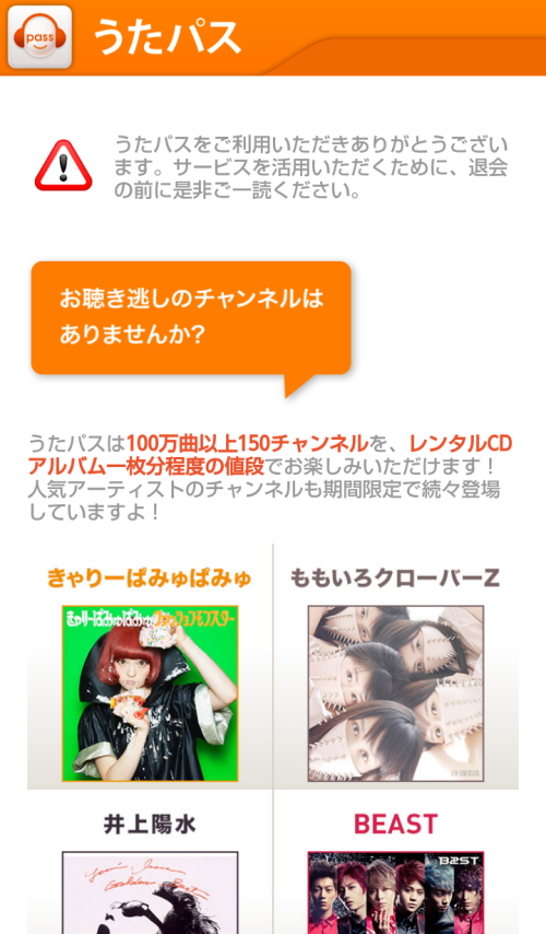 今回、自分の場合はうたパスのみ退会する事にしました。(スマートパスは使いそうだし、ビデオパスは無料クーポンが残っていたので使ってから退会でもいいかなと。)