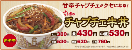 もう半月くらい前になってしまいましたが、すき家の期間限定メニュー「チャプチェ牛丼」を食べてきました。