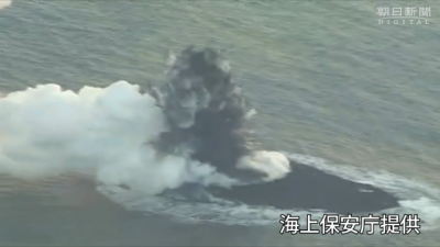 小笠原諸島の西之島近海で火山の噴火があり、小さな島が出現したそうです。海上保安庁が撮影した動画が迫力満点です。