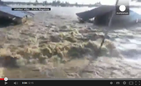 台風30合の影響で発生したフィリピンの高潮の映像が発見されたそうです。その様子は、まさに津波といっていい勢いでした。