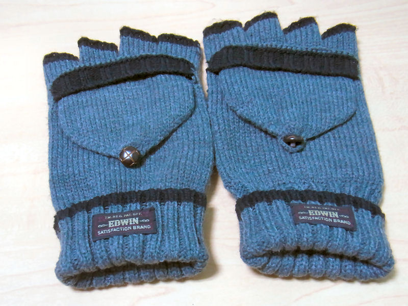 今履いているのがこちら。一応、EDWIN製のようです。指先が出せるので、スマートフォンの操作にも支障がありません。