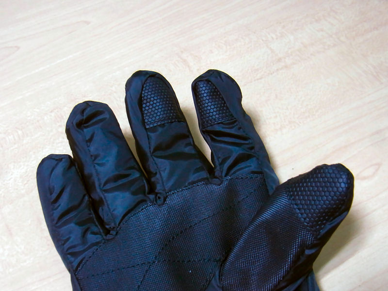 指先をみると、少し素材が違っていて、この部分がタッチパネルを操作できるように通電する素材になっています。