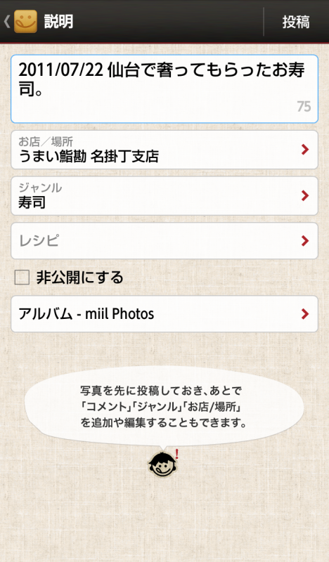 外出先で投稿した写真も、家に帰ってからゆっくりとお店情報を登録しておきましょう。
