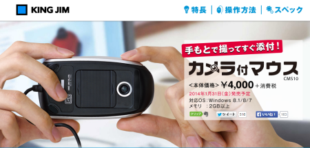あのキングジムから「カメラ付きマウス」が発売されるそうです。普段はマウスとして使いながらも、カメラにもなるという、この発想はなかったですね。