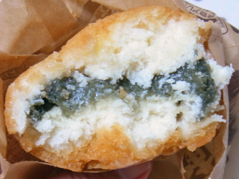 凍み天のノーマルですが、中はこんな感じになっています。よもぎ餅の凍み餅がドーナツ生地にくるまれています。