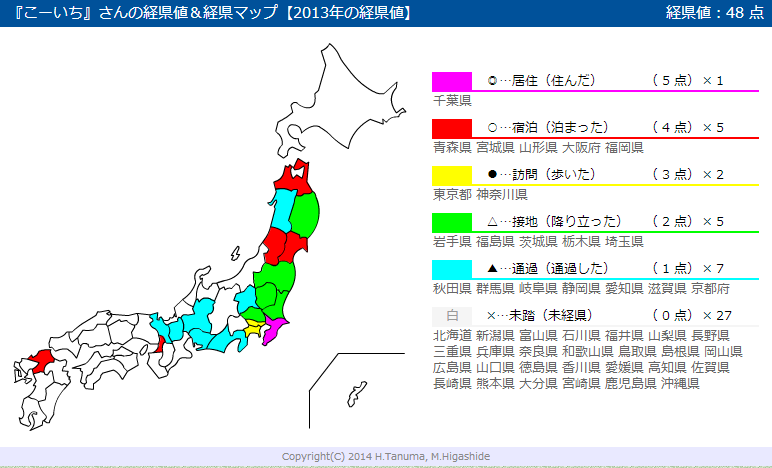 2017年の経県値を出してみました。2017年は東北関東が中心で泊まりも少なかったですね。 -