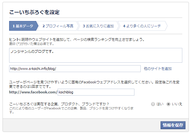 基本データに、ブログのURLなどを入力して、情報の保存をします。