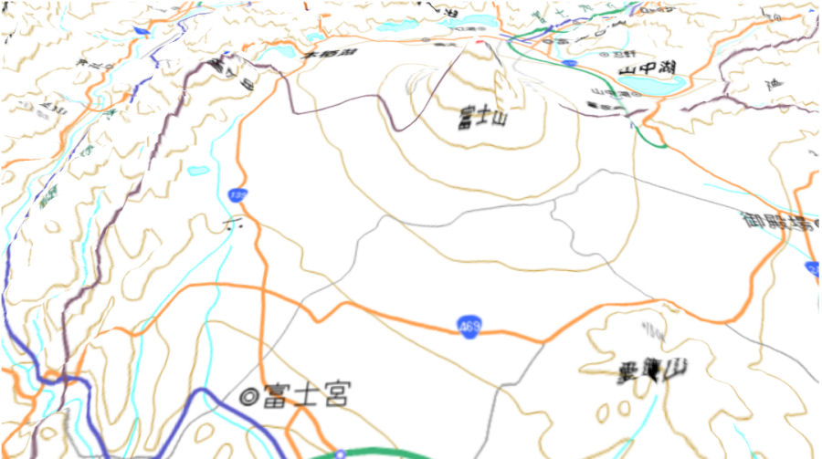 富士山自体は形がはっきりとわかりますが、周辺は思ったほど高低差が見えませんね。市街地でない事もあり、さっぱりとした感じになっています。
