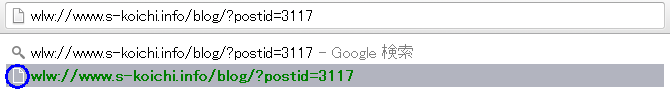 このURLを書き換えて、httpの代わりにwlwを、さらにブログのURLの後ろに postid=???? と指定する必要があります。