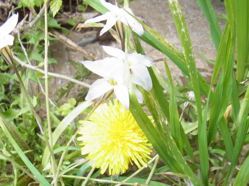 タンポポもハナニラも咲き頃なのか、かなり入り乱れて咲いています。
