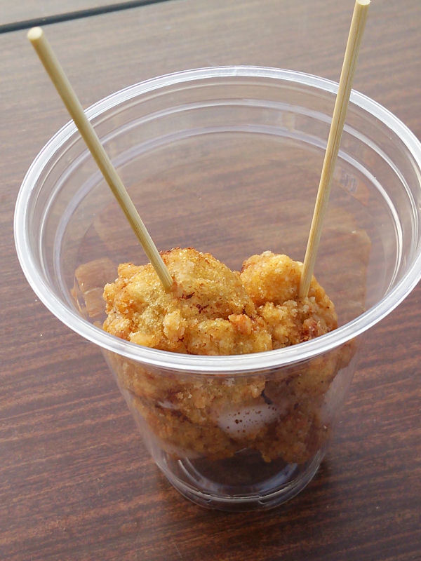 4枚つづりのチケットを使い果たした後ですが、休憩していたら試食で1個からあげをもらいました。
