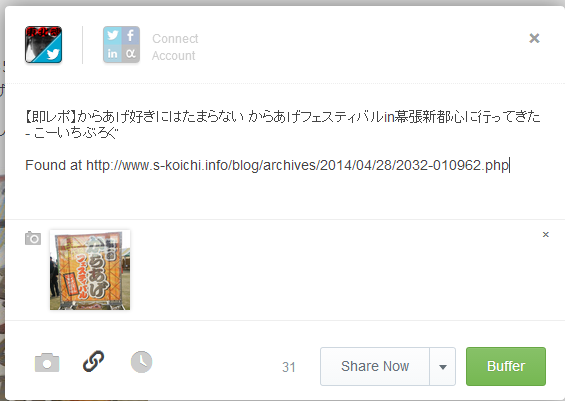 あとは、ツイートする文章を編集してBufferへ送信するだけです。