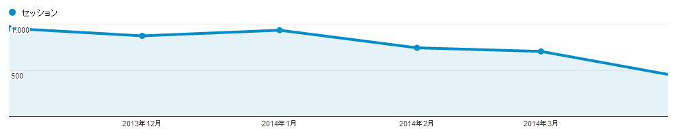 検索トラフィックだけを見れば、特に減っている様子ではありませんでした。数日前の記録なので、最終的には3月よりは多くなりそうという感じです。