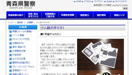 青森県警のサイトに掲載されていた、紙で作れる拳銃のページが削除させられていました。