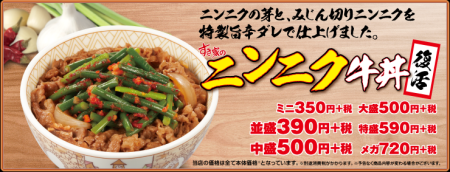 すき家の夏メニュー「ニンニク牛丼」を食べてきました。