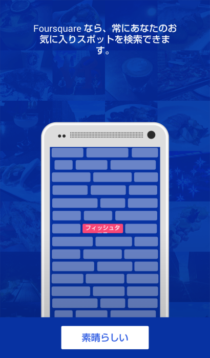新しいfoursquareアプリでは、Yelpのようにスポットを推薦するサービスに変わっています。