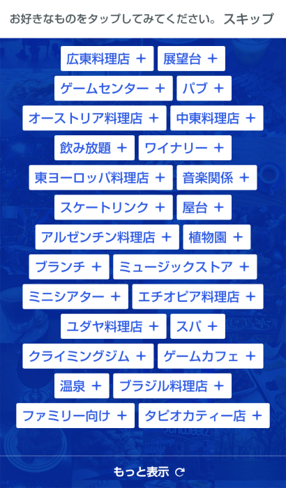 キーワードをタップするとおすすめのスポットが表示されるというものです。