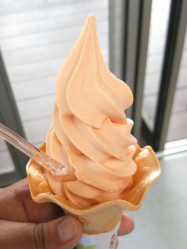 トマトの味と酸味がある、ソフトクリームです。あまり食べた事のない味ですね。トマト好きなら、すんなり受け入れられると思います。