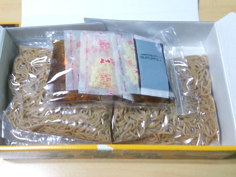 箱を開けてみたところです。見て判るように、通常の中華麺とは違う茶色い麺が入っています。