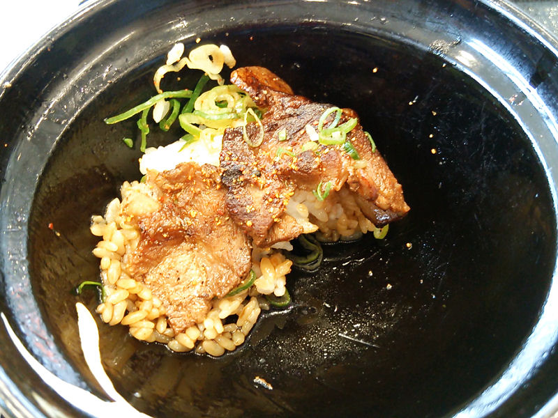 以前に、焼き豚丼を出していましたが、今回はロース豚を使用した豚丼になります。以前と同じく、十勝仕立てとなっていますが、付け合せのキャベツはなく、小口切りのネギが乗ったものとなっています。