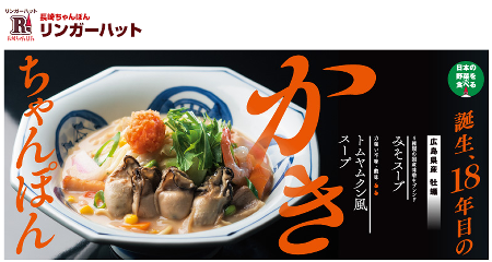 リンガーハットの冬季限定メニュー。かきちゃんぽんが始まりました。今回はみそスープのかきちゃんぽんを食べてきました。プリっぷりの牡蠣が最高です。