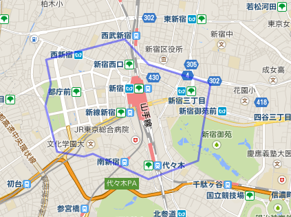 新宿駅の辺りにと比較してみると、ほぼ新宿駅をぐるっと囲んだ感じの大きさになっている事がわかります。