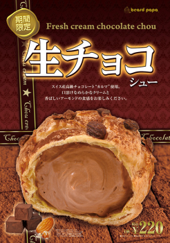 今年もこの季節がやってきました。ビアード・パパの作り立て工房の生チョコシューが期間限定で販売となっています。