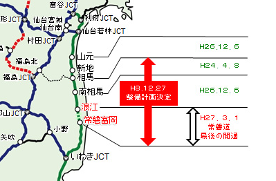 2015年3月1日、常磐自動車道の浪江IC-常磐富岡ICが開通となり、常磐道が全通となります。